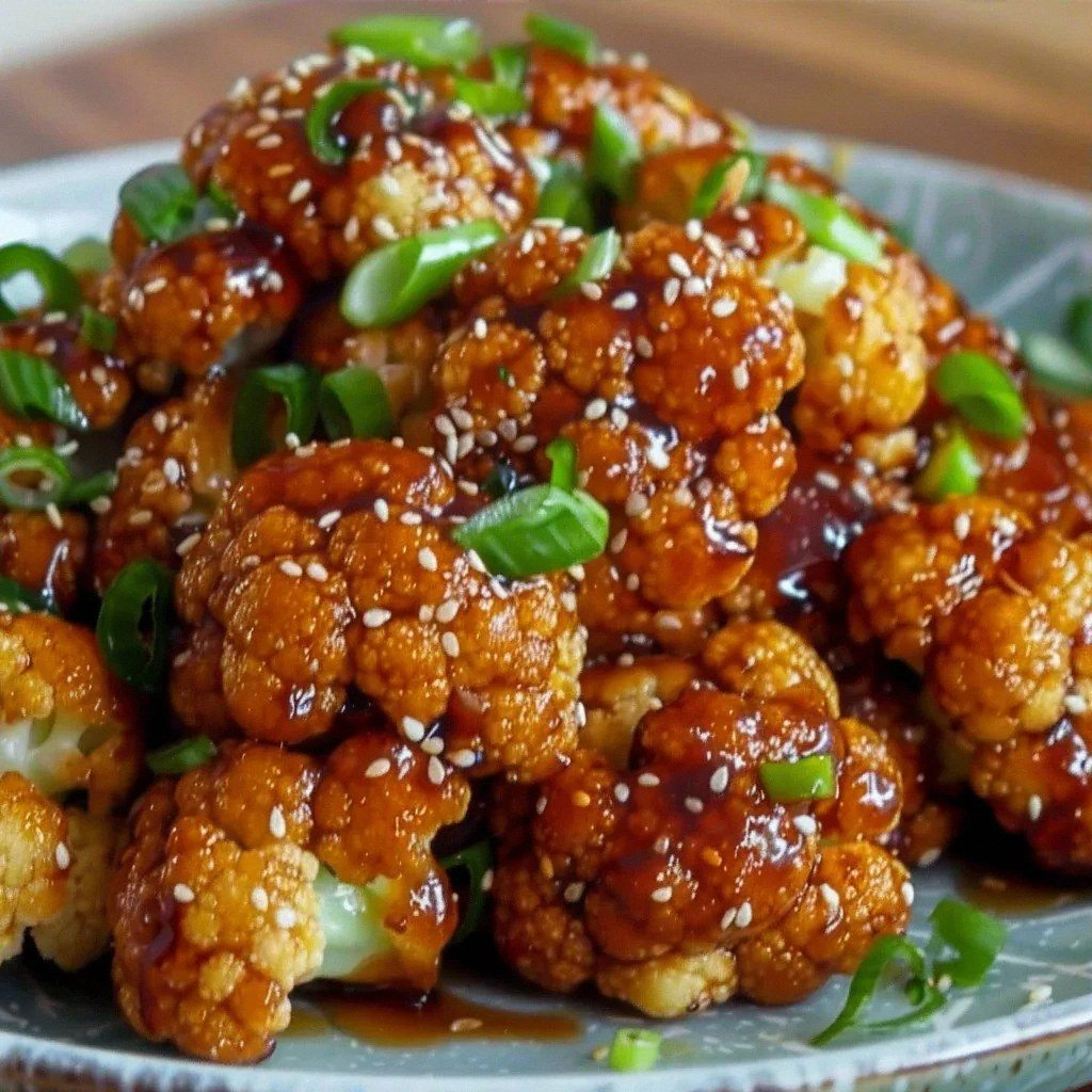 - Transfer the cauliflower to a serving dish, sprinkle the remaining green onions on top, and drizzle any remaining glaze over the surface. The final presentation should look glossy, with a hint of sesame seeds scattered like confetti.