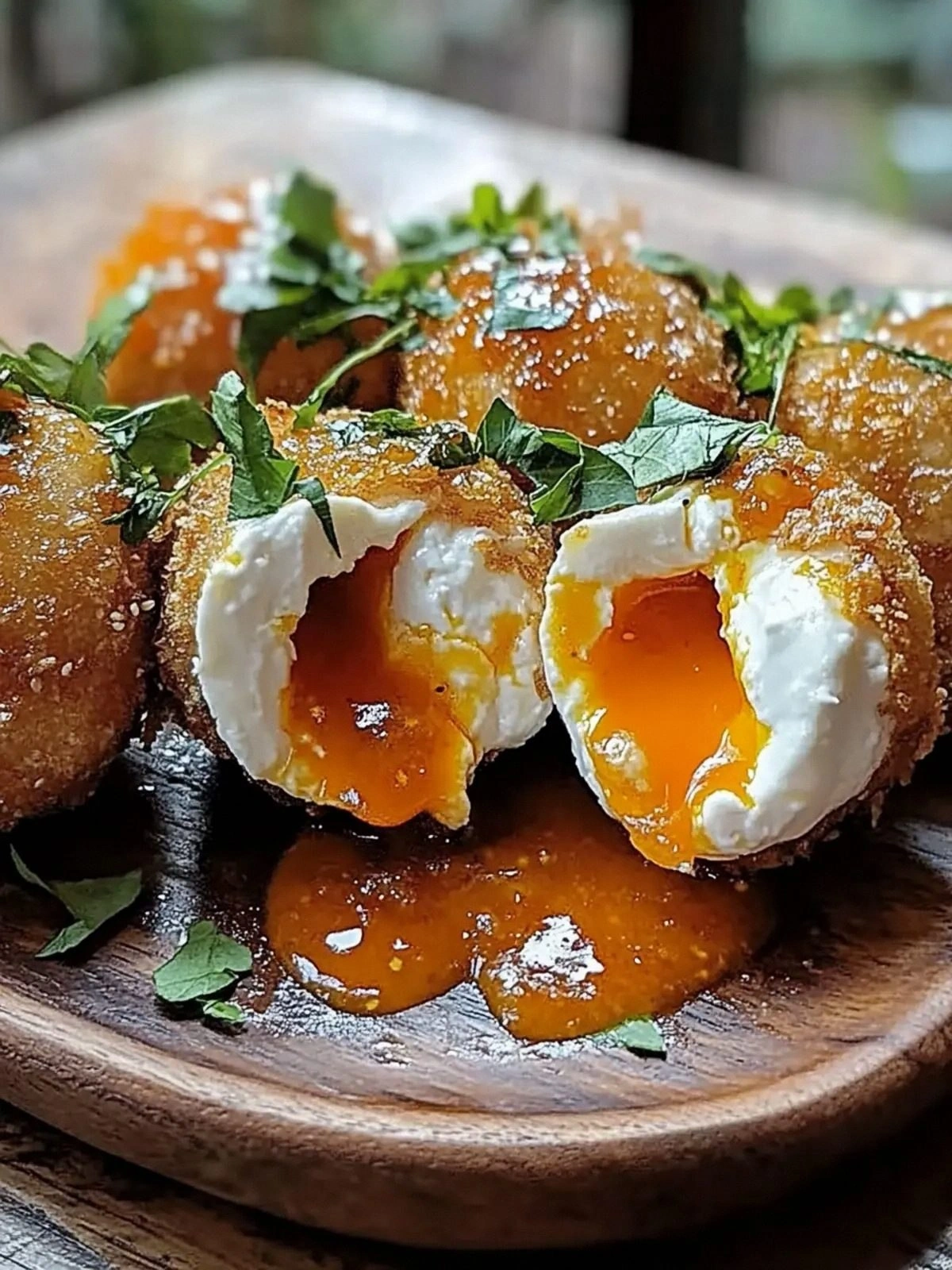 - Step 6: Toss and plate. Once the sauce has chilled, gently pour it over the fried burrata, allowing it to pool around the cheese like a glossy, spicy blanket. Sprinkle fresh cilantro over the top for a burst of color and a fresh herbal note. Arrange the burrata on a warmed platter, ensuring each ball is centered so that the sauce can coat the entire surface. The visual contrast of the golden crust against the white interior is striking.