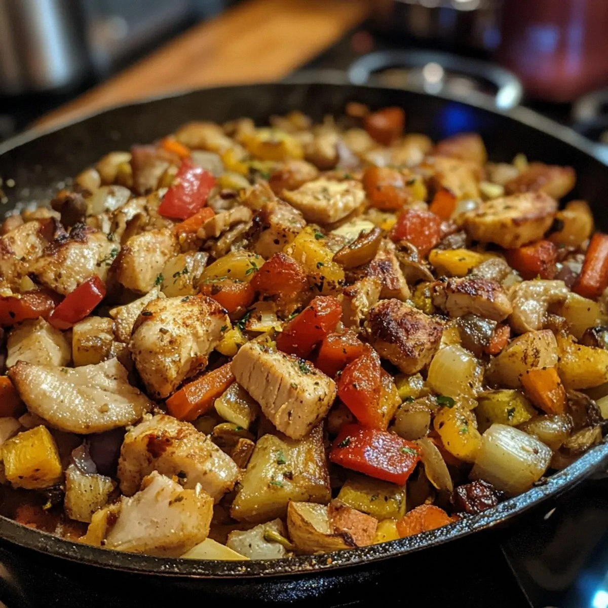 Cool the skillet completely before transferring to an airtight container. Store in the fridge for up to 3 days. The flavors deepen, and the veggies remain crisp.