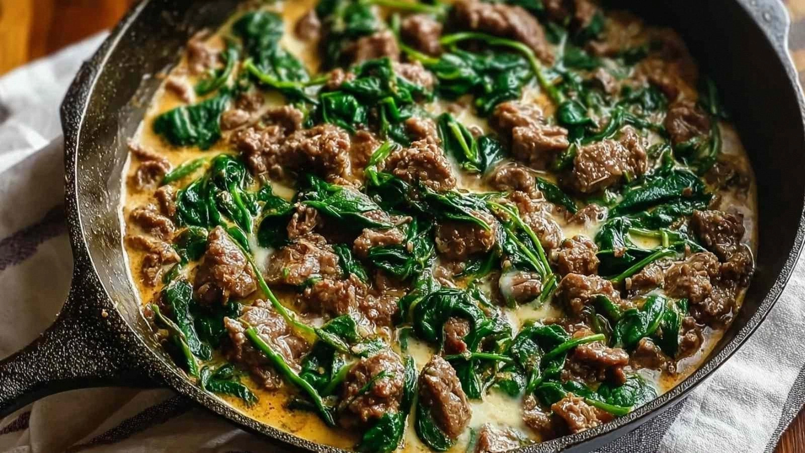 Most recipes get this completely wrong. They either overcook the spinach, under-season the beef, or forget that heavy cream can become a runaway sauce if not handled correctly. The secret to this version is a precise balance of heat, timing, and a splash of olive oil that keeps the meat from sticking and adds a subtle fruity note. I’ve spent months refining this dish, testing different cuts of beef, and tweaking the cream ratio until every spoonful felt like a well‑executed performance.