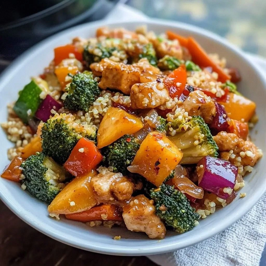 Add cubed tofu, tempeh, or diced chicken breast during step 3. The protein absorbs the sauce, turning the dish into a filling main course. The texture of tofu pairs beautifully with the crunch of the vegetables.