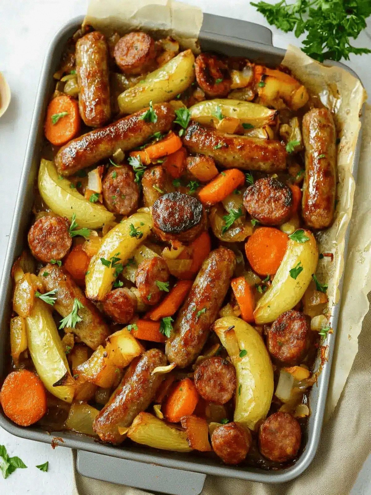 - Check for doneness: the potatoes should be tender inside with crisp edges, the sausages browned and juicy, and the glaze should be glossy and slightly caramelized. If the glaze looks too dry, add a splash of water to create steam and re‑bake for a minute.